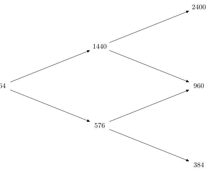 Assuming that the riskless rate is constant at , verify that all risk-neutral up-probabilities are given by one value . Find the time- 0 value of the following three put options all struck at , with expiry 2 :
