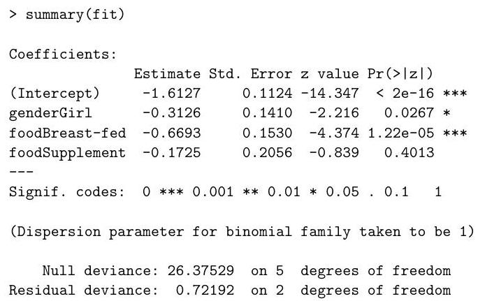>> fit 1<1<- glm (disease/total gender + food + gender:food,
