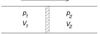 Gas initially occupying volume on the left is forced slowly through the valve at constant pressure . A constant pressure is maintained on the right and the final volume occupied by the gas after passing through the valve is .