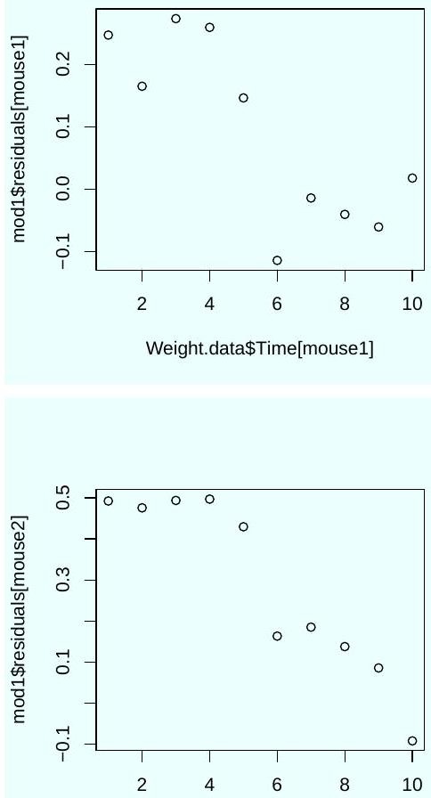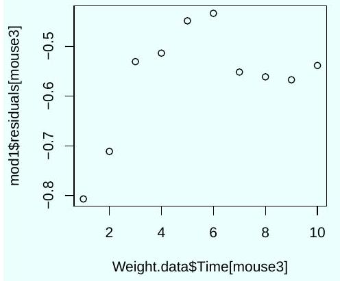 >mod1=lm (Weight ∼ Time*Group + Cage, data=Weight. data)